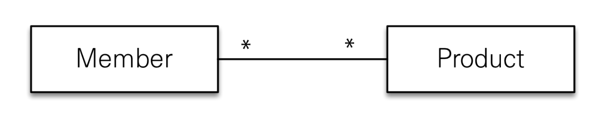 하지만 객체는 컬렉션을 사용해서 객체 2개로 다대다 관계를 만들 수 있다. 예를 들어, 회원 객체는 컬렉션을 사용해서 상품들을 참조하면 되고, 반대로 상품들도 컬렉션을 사용해서 회원들을 참조하면 된다.