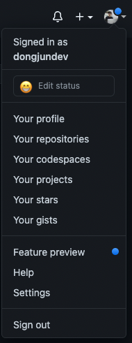 우선 자신의 깃허브로 접속한 후, 프로필을 클릭해 Settings를 누른다.