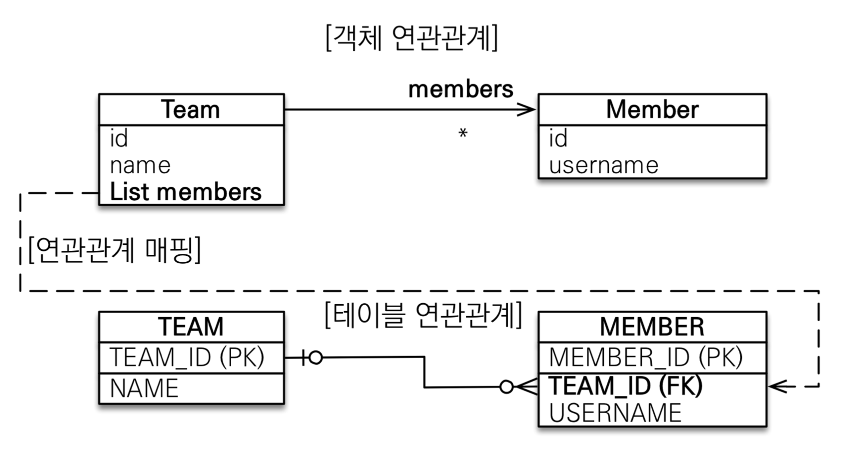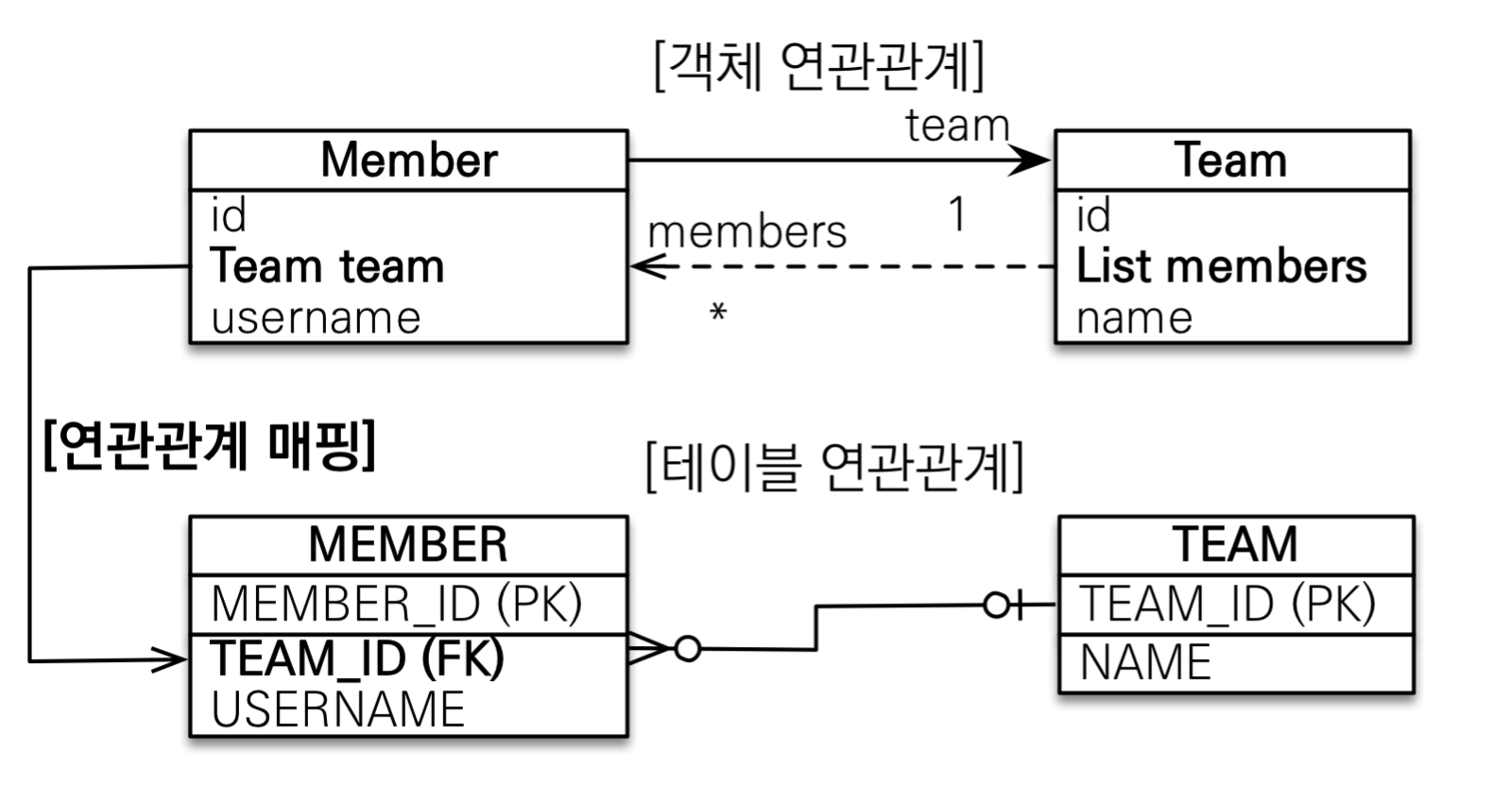 하나의 팀은 여러 회원을 참조할 수 있는데 이런 관계를 일대다 관계라 한다.