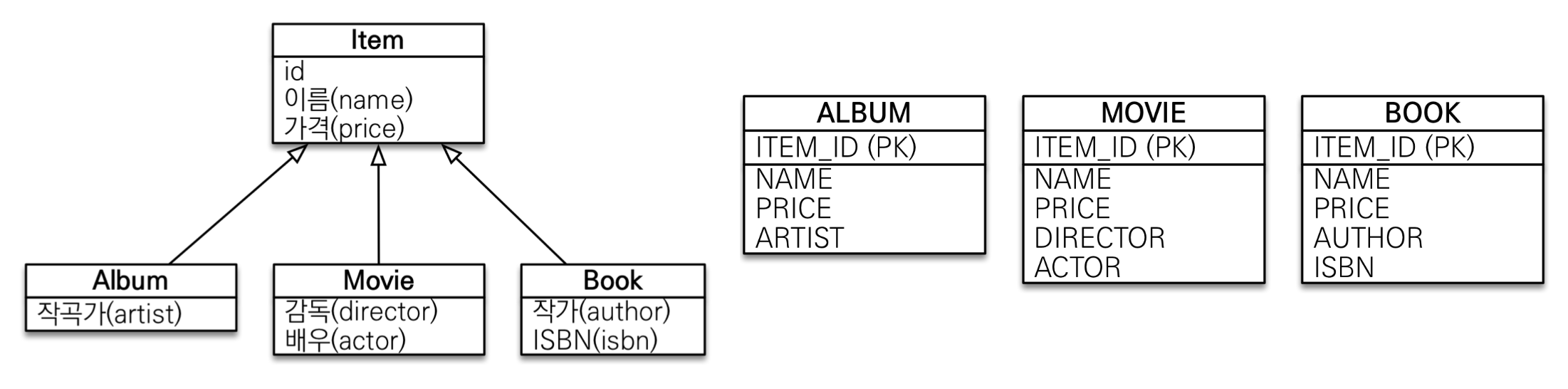 - TABLE_PER_CLASS: 구현 클래스마다 테이블 전략