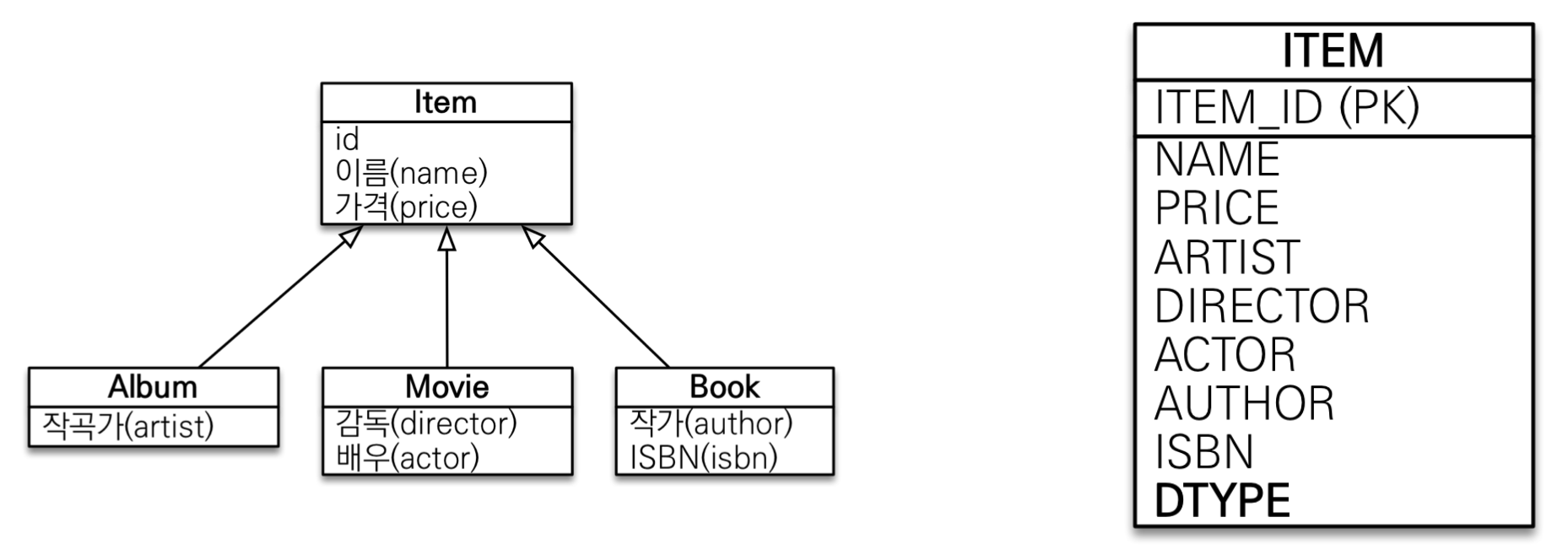 - SINGLE_TABLE: 단일 테이블 전략