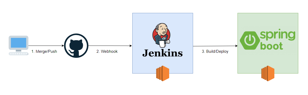 2. main 브런치에 변동이 있으면 github가 webhook을 통해 젠킨스 호출,
