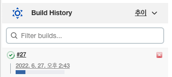 이제 main 브랜치에 push를 하면 빌드가 생성되고 젠킨스 메인화면 Build History에 로그들이 하나씩 쌓이는 것을 볼 수 있다.