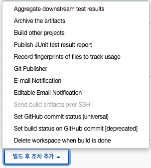 다시 아이템의 구성에 돌아가 빌드 섹션에 빌드 후 조치 추가 -> Send build artifacts over SSH를 클릭한다.